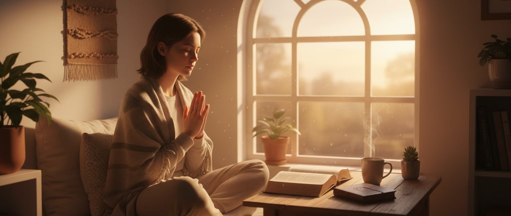 Tips: Choose a quiet, comfortable spot to pray, whether it's your bedroom, a park bench, or a cozy corner at a coffee shop. If you have the space, keep a Bible and/or journal nearby.